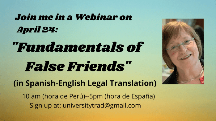 Several of the attendees of the webinar on False Friends that I gave on Saturday asked me about my “Thematic Lexicon of Spanish-English Legal Terminology,” wanting an idea about the contents of the work. This blog entry will perhaps be excessively long, but in the event it proves of interest, there’s a blurb on the book below, along with the complete Table of Contents.